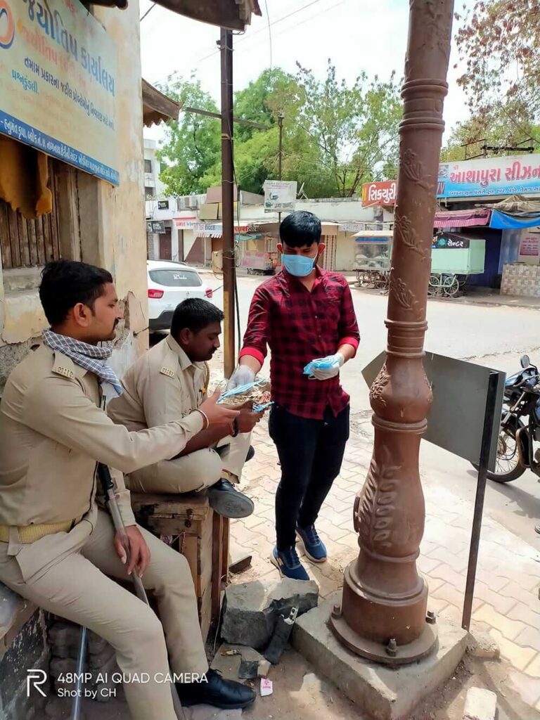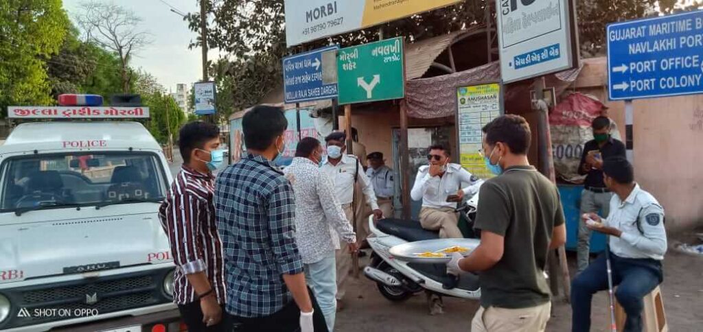 In this needful and hard times, we have noticed that it’s too difficult to manage and purchase poor people’s basic needs. However, we find ourselves responsible for serving the society if we are awarded the capabilities to serve them. So we had a Corona Campaign Drive at Tankara Morbi, which includes providing food and masks to the poor people and police force who constantly keep us safe by helping the government keep the city up to the mark by keeping the citizens follow the rules